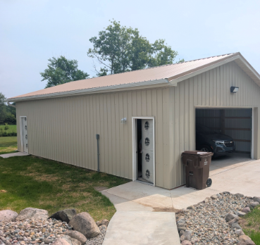 Pole barn construction uses pressure-treated posts set deep into the ground, supporting a engineered truss roof and steel or board siding. This method creates open interior space without load-bearing walls, so you can arrange equipment, vehicles, or animals however your operation requires. In Mid-Michigan, the design must account for snow loads that can exceed forty pounds per square foot and soil conditions that shift with frost heave, which is why post depth and roof pitch matter more than they would in milder climates.